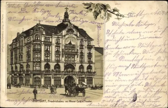Litho Stuttgart in Württemberg, Friedrichsbau, Wiener Cafe, Theater