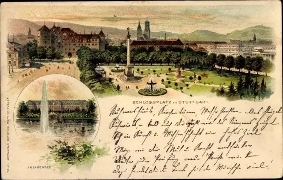 Litho Stuttgart in Württemberg, Schlossplatz, Anlagensee