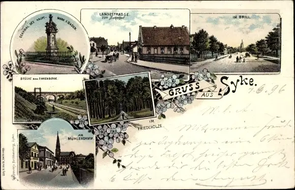 Litho Syke in Niedersachsen, Denkmal, Langestraße, Im Brill, Mühlendamm, Friedeholz