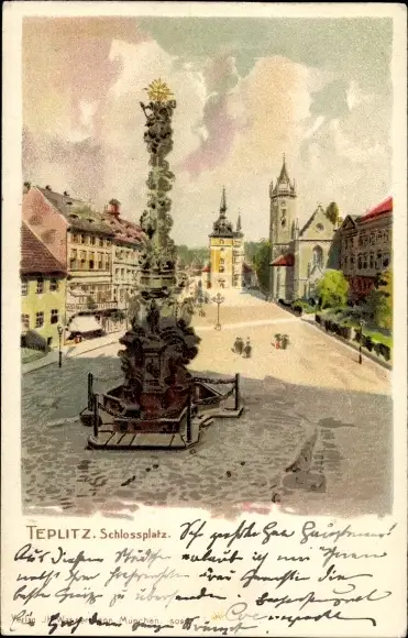 Litho Teplice Teplitz Region Aussig, Schlossplatz