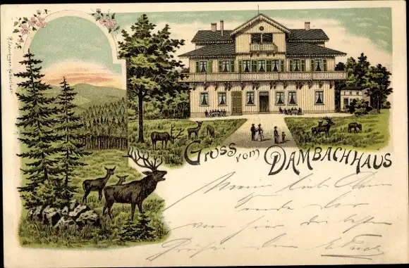 Litho Thale im Harz, Dambachhaus, Hirsche
