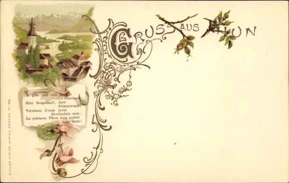 Litho Thun Kanton Bern Schweiz, Panorama, Gedicht