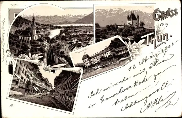 Litho Thun Kt. Bern Schweiz, Burg, Straßenpartie, Ortsansichten