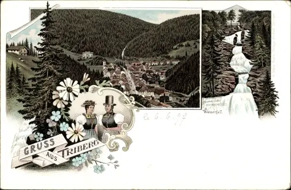 Litho Triberg im Schwarzwald, Panorama, Wasserfall