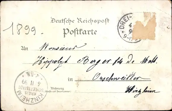 Zustand, siehe Scan, gelaufen, 1899 - ca 14 cm X 9 cm