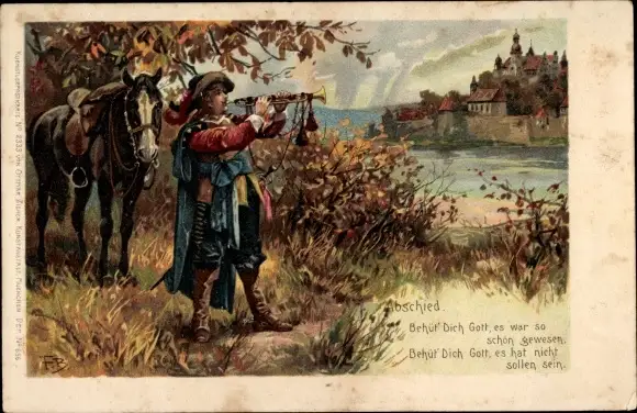 Litho Trompeter von Säckingen, Behüt Dich Gott, Pferd