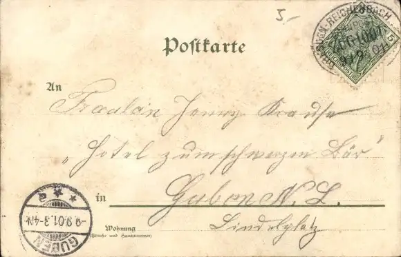 Zustand, siehe Scan, gelaufen, 1901- Bahnpoststempel Dresden - Reichenbach, Zug 1001 - ca 14 cm X 9 cm