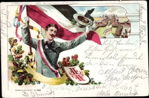 Litho Turner mit Fahne, Jahnkreuz