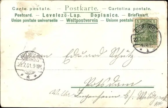 Zustand, siehe Scan, gelaufen, 1901 - ca 5 cm X 3 cm