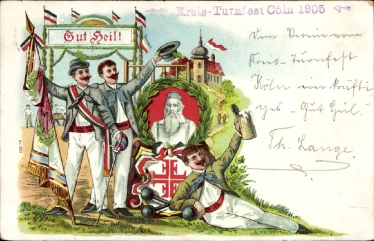 Litho Turnfest Köln 1905, Turner, Gut Heil, Turnvater Jahn