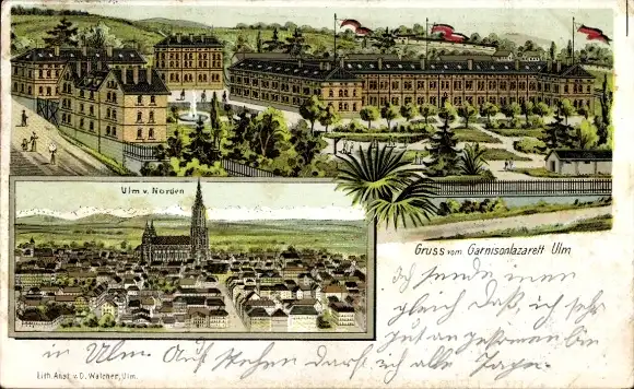 Litho Ulm an der Donau, Garnisonlazarett, Münster, Stadt
