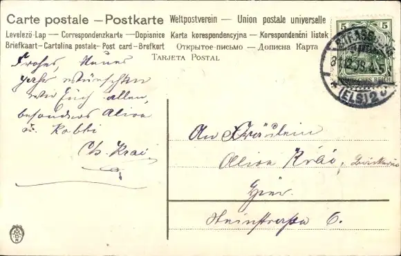 Zustand, siehe Scan, gelaufen, 1908 - ca 14 cm X 9 cm