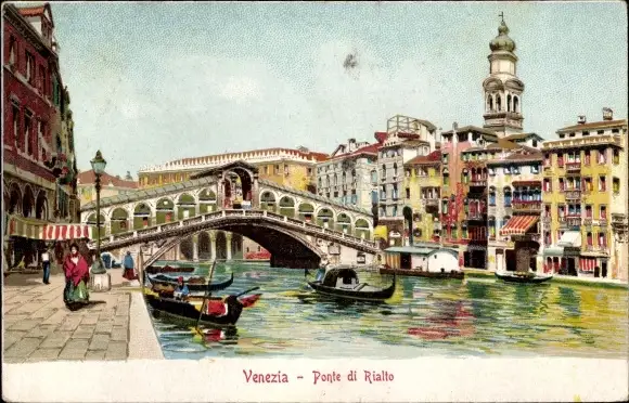 Litho Venezia Venedig Veneto, Ponte di Rialto, Gondeln