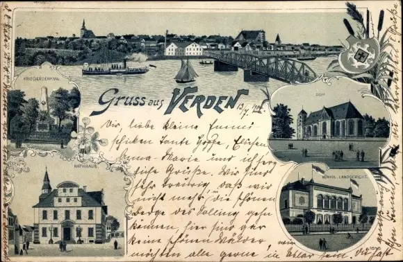 Litho Verden an der Aller, Rathaus, Dom, Landgericht, Kriegerdenkmal