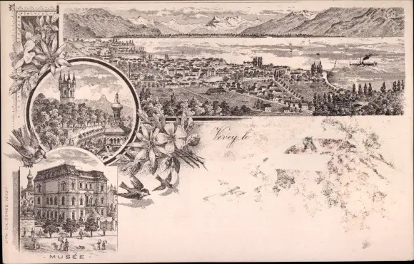 Litho Vevey Kanton Waadt, Panorama, Musée
