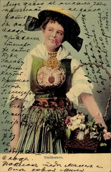 Litho Vierländerin, Frau in Volkstracht, Blumenkorb