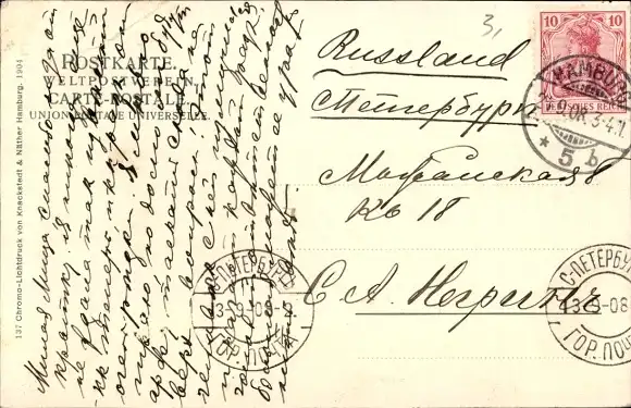Zustand, siehe Scan, gelaufen, 1908 - ca 9 cm X 14 cm