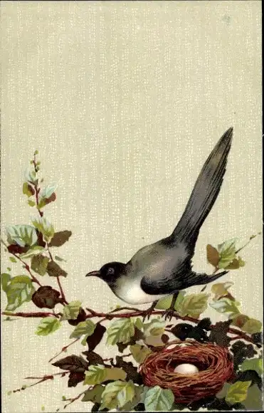 Litho Vogel, Elster ?, Vogelnest