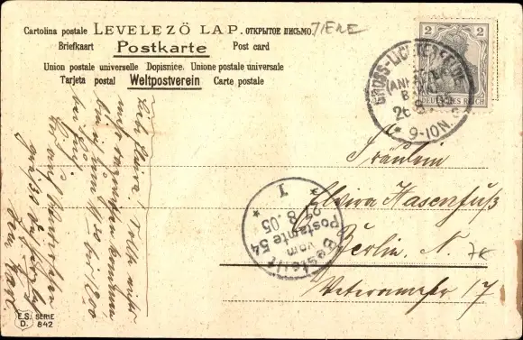 Zustand, siehe Scan, gelaufen, 1905 - ca 9 cm X 14 cm