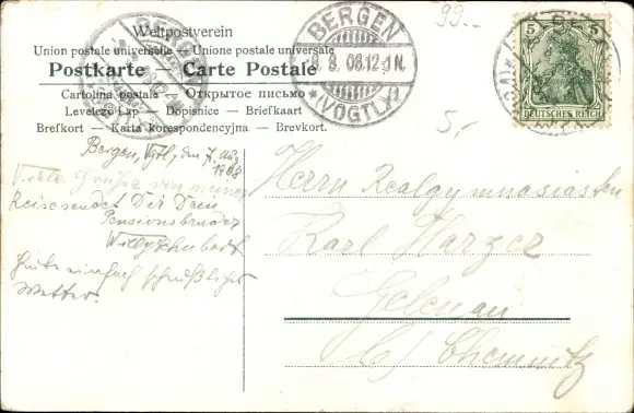 Zustand, siehe Scan, gelaufen, 1908 - ca 14 cm X 9 cm