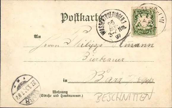 Zustand, siehe Scan, gelaufen, 1897 - ca 14 cm X 9 cm