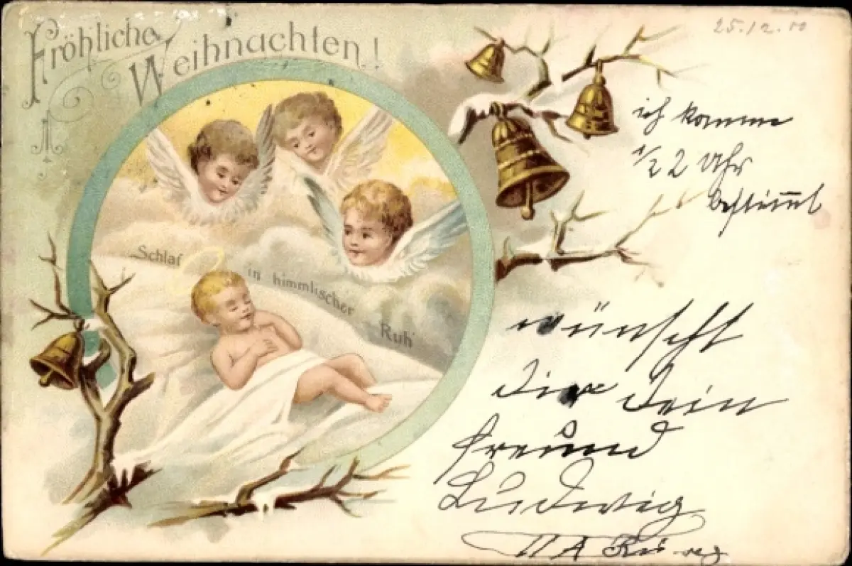 Litho Weihnachten, Engel, Schlaf in himmlischer Ruh, Kind