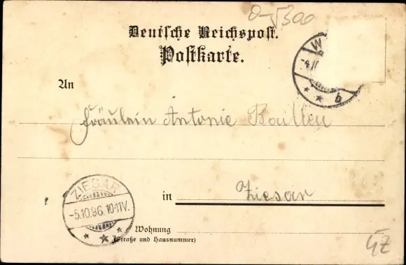 Zustand, siehe Scan, gelaufen, 1896 - ca 14 cm X 9 cm