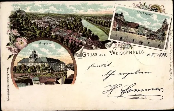 Litho Weißenfels an der Saale, Marktplatz, Schloss, Totalansicht