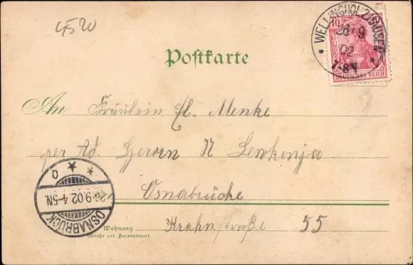 Zustand, siehe Scan, gelaufen, 1902 - ca 14 cm X 9 cm