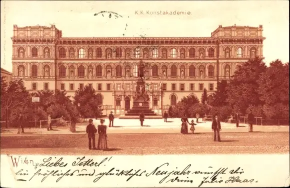 Litho Wien 1 Innere Stadt, K. K. Kunstakademie, Denkmal