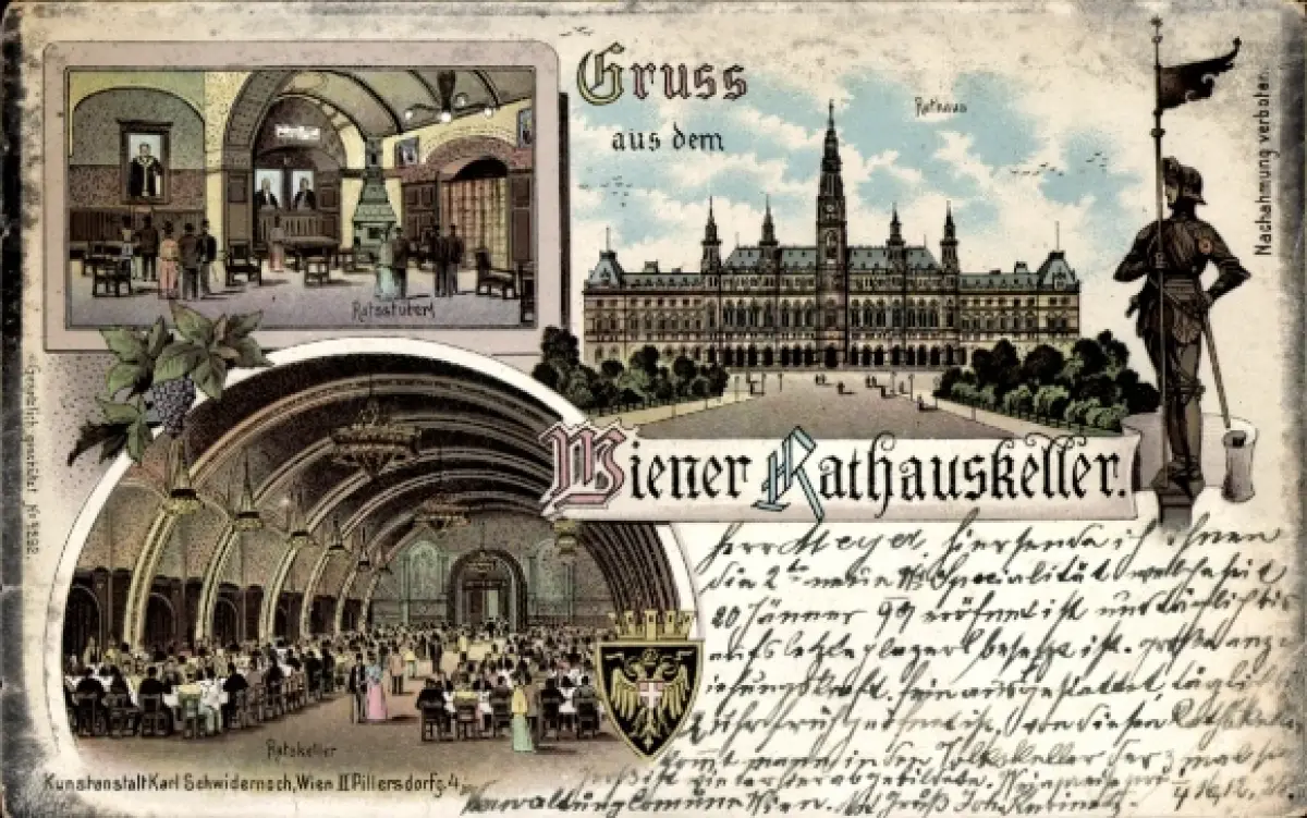 Litho Wien 1 Innere Stadt, Rathaus, Wiener Rathauskeller, Ratskeller, Ratsstüberl