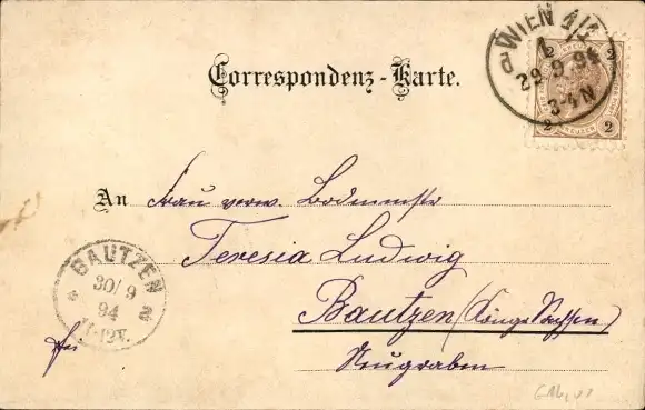 Zustand, siehe Scan, gelaufen, 1894 - ca 14 cm X 9 cm