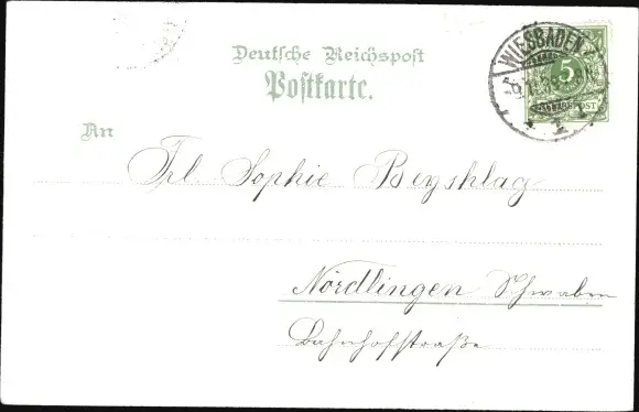 Litho Wiesbaden in Hessen, Wilhelmstraße, Denkmal Wilhelm I., Ringkirche, Theater