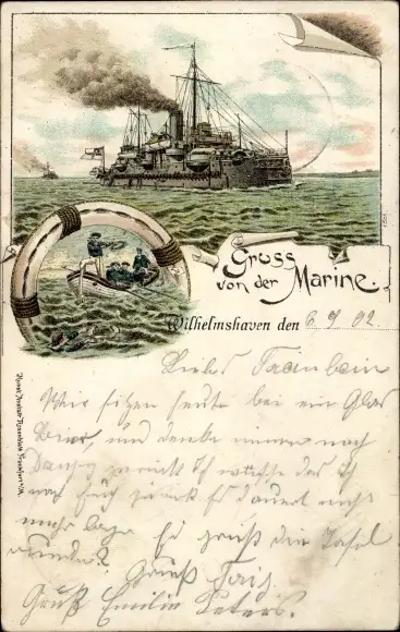 Litho Wilhelmshaven an der Nordsee, Deutsches Kriegsschiff, Rettungsboot
