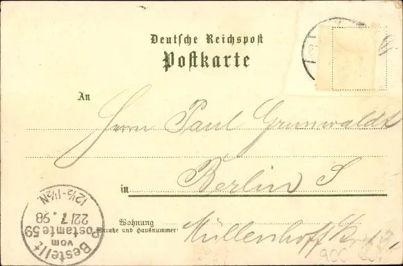 Zustand, siehe Scan, gelaufen, 1898- Inh.: Wilhelm Schulz - ca 14 cm X 9 cm