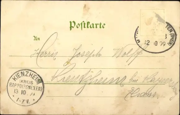 Zustand, siehe Scan, gelaufen, 1899 - ca 14 cm X 9 cm