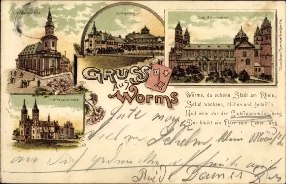 Litho Worms am Rhein, Stadtansichten, Liebfrauenkirche, Wappen