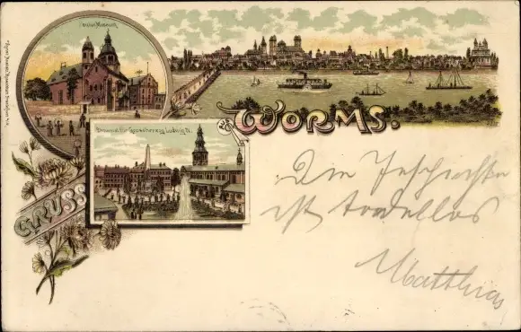 Litho Worms am Rhein, Totalansicht, Springbrunnen, Museum
