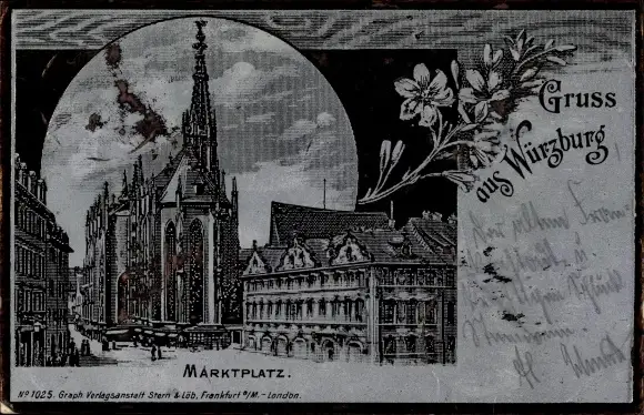 Litho Würzburg am Main Unterfranken, Marktplatz, Kirche