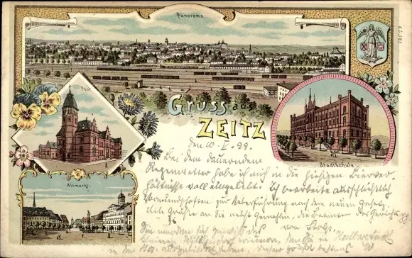 Litho Zeitz in Sachsen Anhalt, Panorama, Post, Altmarkt, Stadtschule
