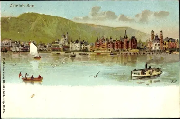 Litho Zürich Stadt Schweiz, Blick vom Zürichsee
