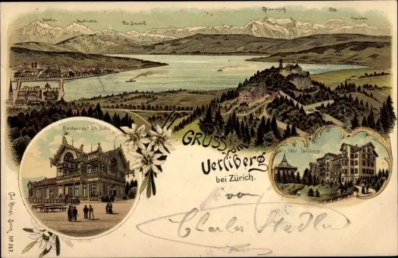 Litho Zürich Stadt Schweiz, Uetliberg, Hotel, Restaurant Uto Kulm