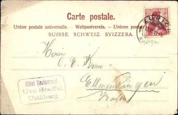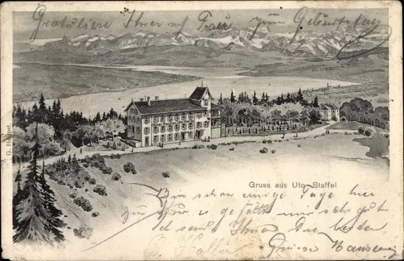 Litho Zürich Stadt Schweiz, Uetliberg, Hotel Uro Staffel