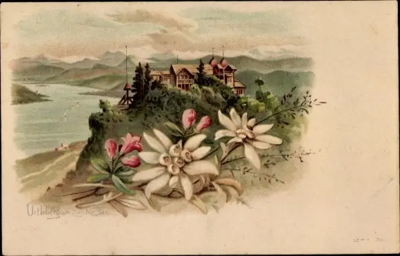 Litho Zürich Stadt Schweiz, Uetliberg am Züricher See