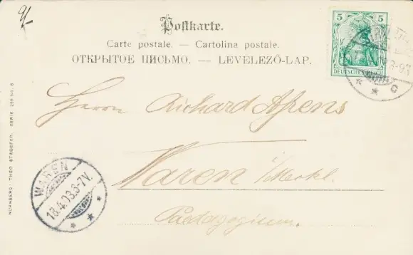 Zustand, siehe Scan, gelaufen, 1903 - ca 14 cm X 9 cm