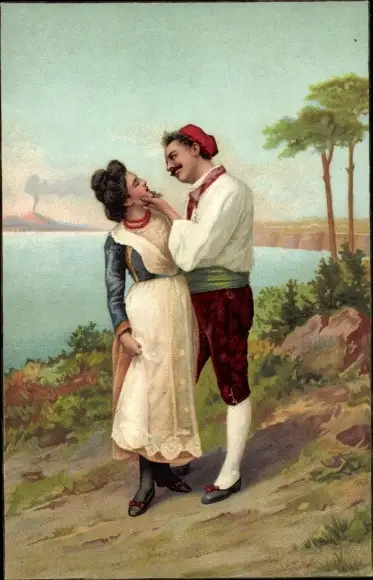 Litho Zwei Italiener in Trachten, Stengel 19844