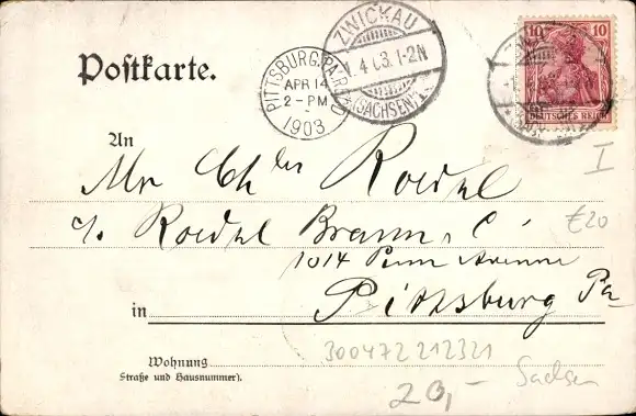 Zustand, siehe Scan, gelaufen, 1903 - ca 14 cm X 9 cm