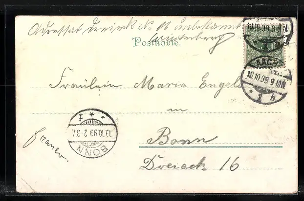gelaufen 1899, Eckknick unten rechts, guter Zustand