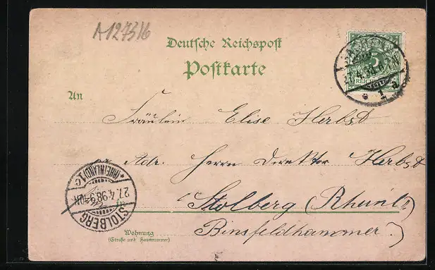 gelaufen 1898, Eckknicke li. oben u. re. unten, guter Zustand