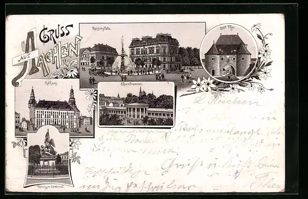 Lithographie Aachen, Kaiserplatz, Elisenbrunnen